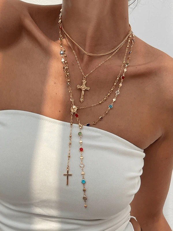 สร้อยคอทองสามชั้น โซ่หนาบาง จี้ดาว สไตล์หรูหรา เหมาะกับสาวมั่น