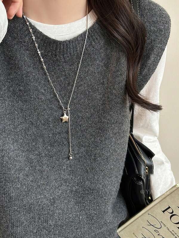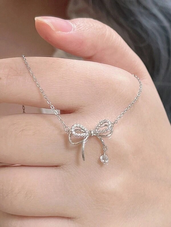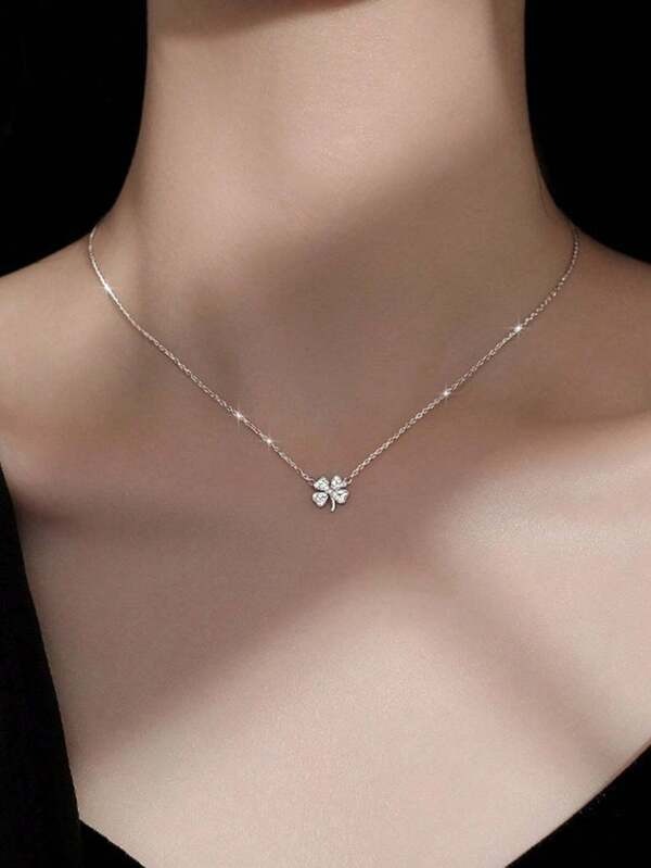 สร้อยคอเงินจี้เพชรเล็ก มินิมอล สวยหรู สไตล์เกาหลี ใส่ทุกวัน